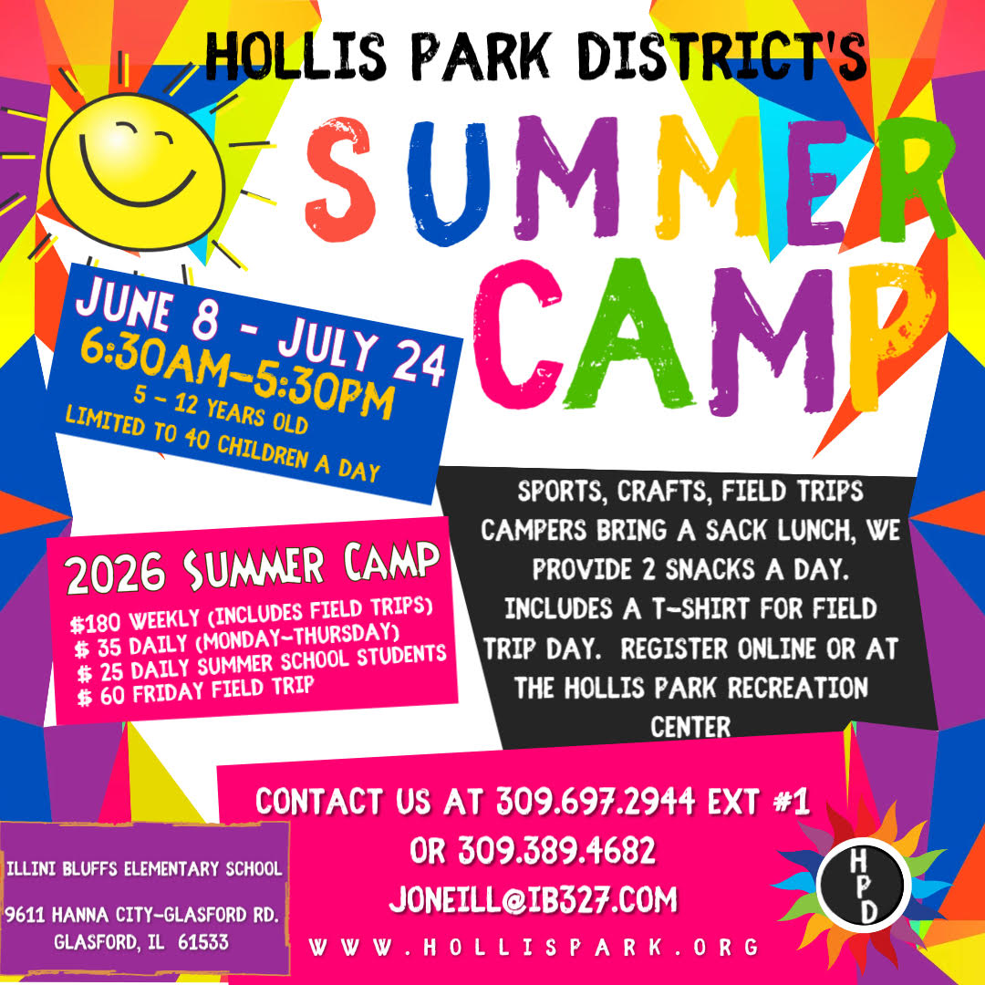 A summer camp program will be offered at Illini Bluffs Elementary School. Campers will participate in a variety of activities, crafts and Friday Field Trips, plus each week we have a special theme and activities each day to go along with our theme for the week. Payments are due at registration or by Friday each week.